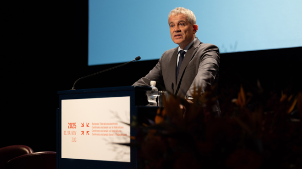 Bundesrat Beat Jans hat am 13. November an der Nationalen Föderalismuskonferenz in Zug teilgenommen. In seiner Rede vor Vertreterinnen und Vertretern von Kantonen, Gemeinden und Bund ging er auf Vorzüge, Herausforderungen und Chancen unseres föderalistischen Systems ein: «Föderalismus zwingt uns, zusammenzuarbeiten und uns einzubringen, das schafft Stabilität und Identifikation.»