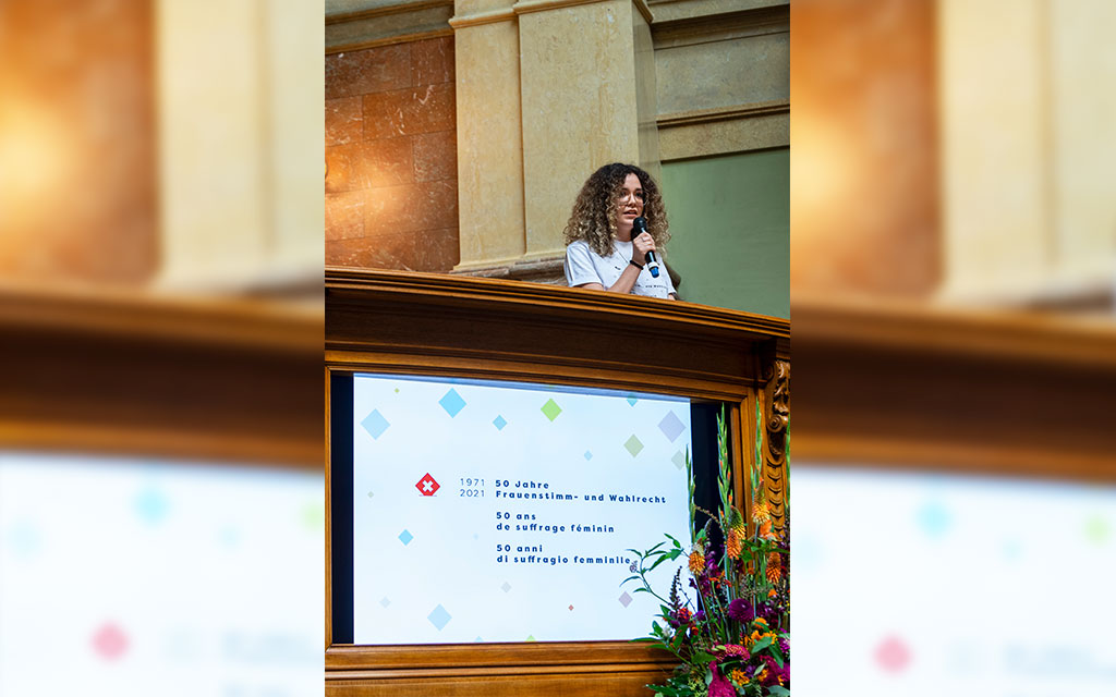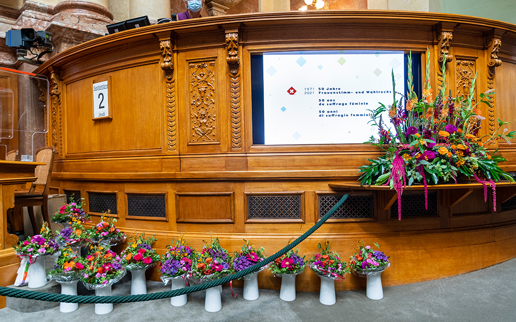 Im Zentrum stand die vom EJPD organisierte offizielle Feier zu 50 Jahren Frauenstimmrecht im Parlamentsgebäude in Bern mit geladenen Gästen aus Politik, Wirtschaft und Zivilgesellschaft am 2. September 2021. Unter anderem nahmen Pionierin Hanna Sahlfeld-Singer und alt Bundesrätin Ruth Dreifuss teil.