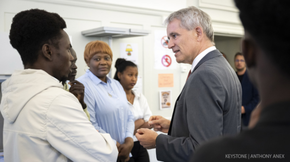 Le conseiller fédéral Beat Jans s’est rendu dans une entreprise formatrice du canton de Fribourg le 28 octobre 2025. Accompagné des conseillers d’État fribourgeois Olivier Curty et Philippe Demierre, il a salué les bons résultats du préapprentissage d’intégration (PAI) et l’investissement des entreprises et des écoles professionnelles dans ce programme. Le PAI dure un an. Il prépare des réfugiés et d’autres personnes issues de la migration à se lancer dans une formation professionnelle initiale.
