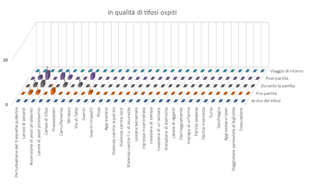 Esempio: In occasione di 24 incontri di calcio, alcuni tifosi ospiti hanno commesso atti violenti dopo la partita